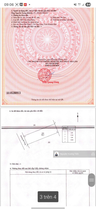 Cam Tân Cam Lâm, gần Sân Golf Quốc Lộ 1A.Đường ô tô thông, đi lại thuận tiện.Khu dân cư hiện hữu, xây ở ngay.Diện tích: 90m² full thổ cư 100