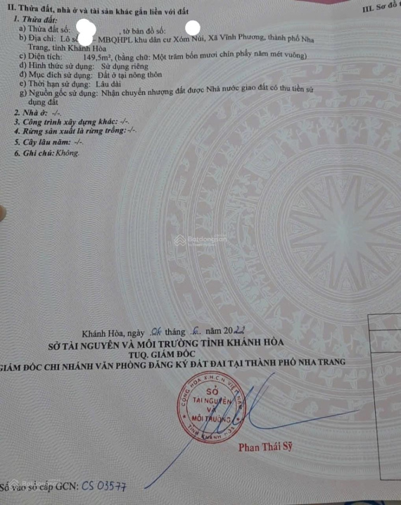 Bán đất gần trung tâm Vĩnh Phương, Nha Trang.Lô đất đẹp pháp lý rõ ràng tiềm năng sinh lời bền vững.Thông tin chi tiết:Diện tích: 149,5m² full thổ cư ngang 6m, vuông vức