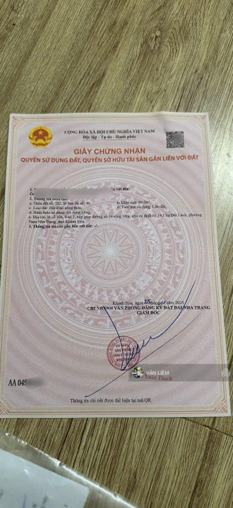 Đất Lành, Vĩnh Thái, Nha Trang là mảnh đất lý tưởng cho những ai muốn xây dựng tổ ấm hoặc đầu tư. Diện tích 64 m², giá chỉ 3,3 tỷ, pháp lý đầy đủ