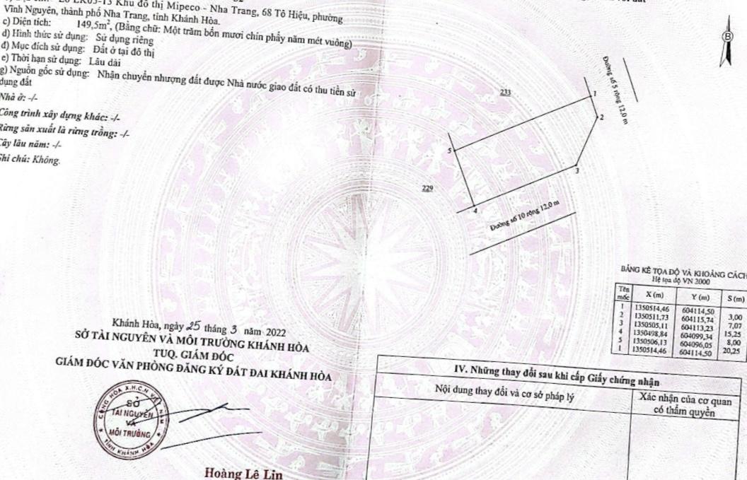 Bán đất 2 mặt tiền dự án Mipeco TP Nha Trang gần biển - sổ hồng sẵn trao tay-chỉ 73tr/m2(11tỷ250tr)