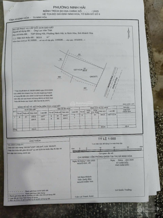 Bán đất mặt biển Dốc Lết. Diện tích: 363.6m² có 200m² thổ cư, đất ở đô thị du lịch, sổ đỏ chính chủ. Vị trí ngay trên bờ kè bãi biển Dốc Lết, chính Đông, phía Bắc bờ biển Dốc Lết gần Mũi Dù xung quanh là quán cà phê, quán ăn, đã có vài biện thự nghỉ dưỡng, vài homestays sát với các khu du lịch nghỉ dưỡng Paradise Dốc Lết, 4be Dốc Lết Song of Coco Beach, TTC Dốc Lết, công viên nước mói khánh thành