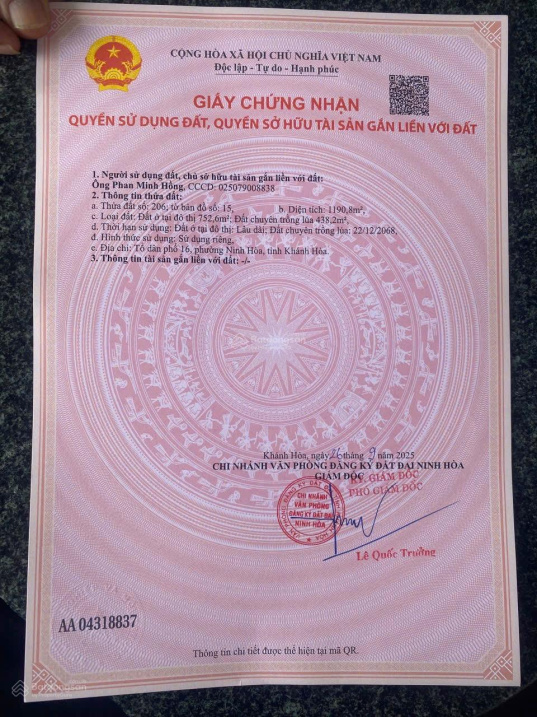 Bán đất tại đường 2/4, Ninh Hiệp, Ninh Hòa, 45 tỷ, 3600 m2, giá tốt, thổ cư 1.752m2