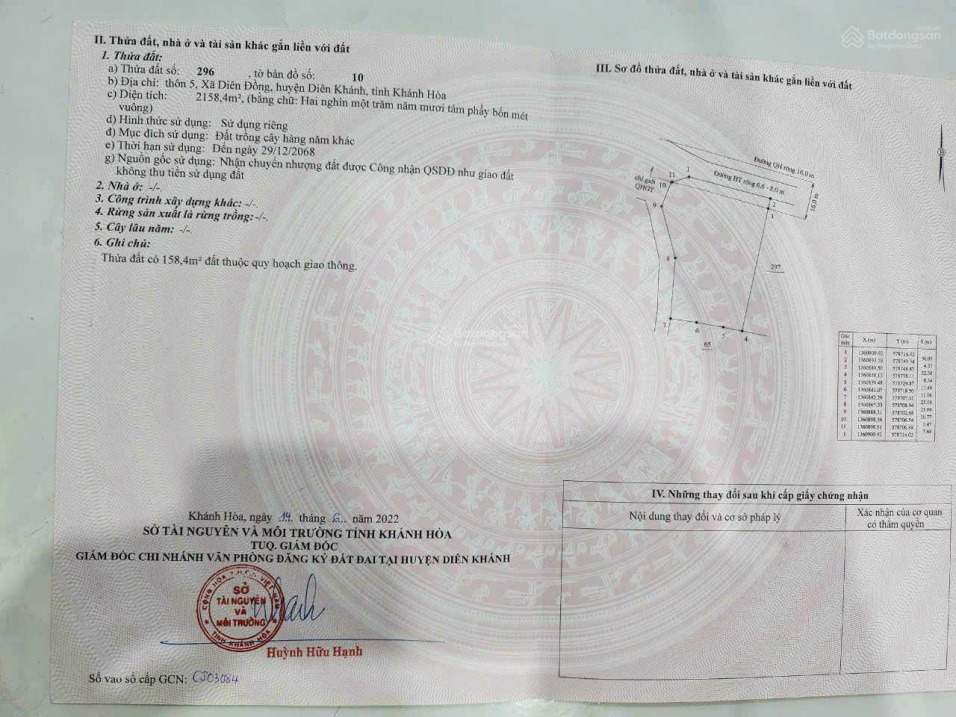Bán đất Thôn 5, xã Diên Đồng, Huyện Diên Khánh, tỉnh khánh hòa