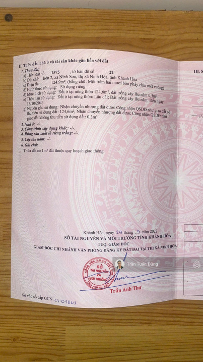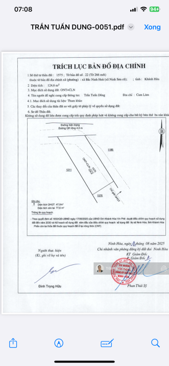 Bán lô đất bề ngang rộng 8m, mặt tiền QH 42m, thuộc Ninh Sơn, Thị xã Ninh Hoà.124.9m² full thổ cư bo trọn con đường 42m vào ngay KCN Ninh Sơn