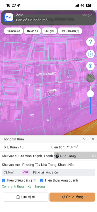 Bán gấp lô đất thổ cư phường Tây Nha Trang, Khánh Hòa.Giá tốt Sổ mới 2025 hẻm rộng 3m dân cư hiện hữu.Diện tích: 71,4m².Loại đất: Đất ở tại nông thôn ONT Thổ cư 100