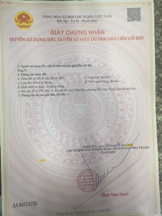 Bán lô biệt thự đường Xuân Thuỷ, KĐT Vĩnh Hoà, Nha Trang 303,4m² ngang 10m giá chỉ 57 triệu/m².Cần bán lô đất đường Xuân Thuỷ, KĐT Vĩnh Hoà, Vĩnh Hoà, Bắc Nha Trang