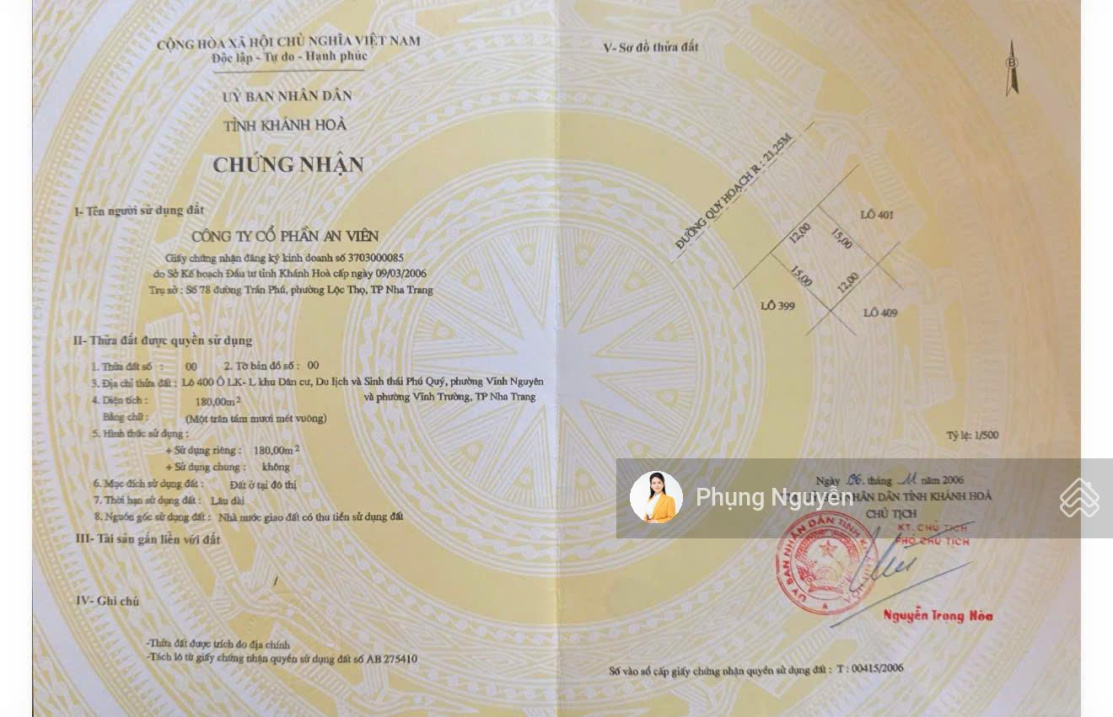 Bán lô góc 2 mặt tiền đường lớn 26m và 21m tại An Viên Nha Trang, kết nối dự án Vinhomes Pearl Bay