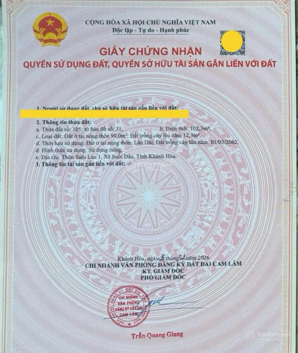 Đất Suối Cát giá chỉ 750 triệu bao sang tên.Gần đường Tỉnh Lộ 3 và Hương Lộ 4.Diện tích: 102 m², 90m² thổ cư.Đường thông, bê tông 6m.View cánh đồng cực chill, thoáng mát
