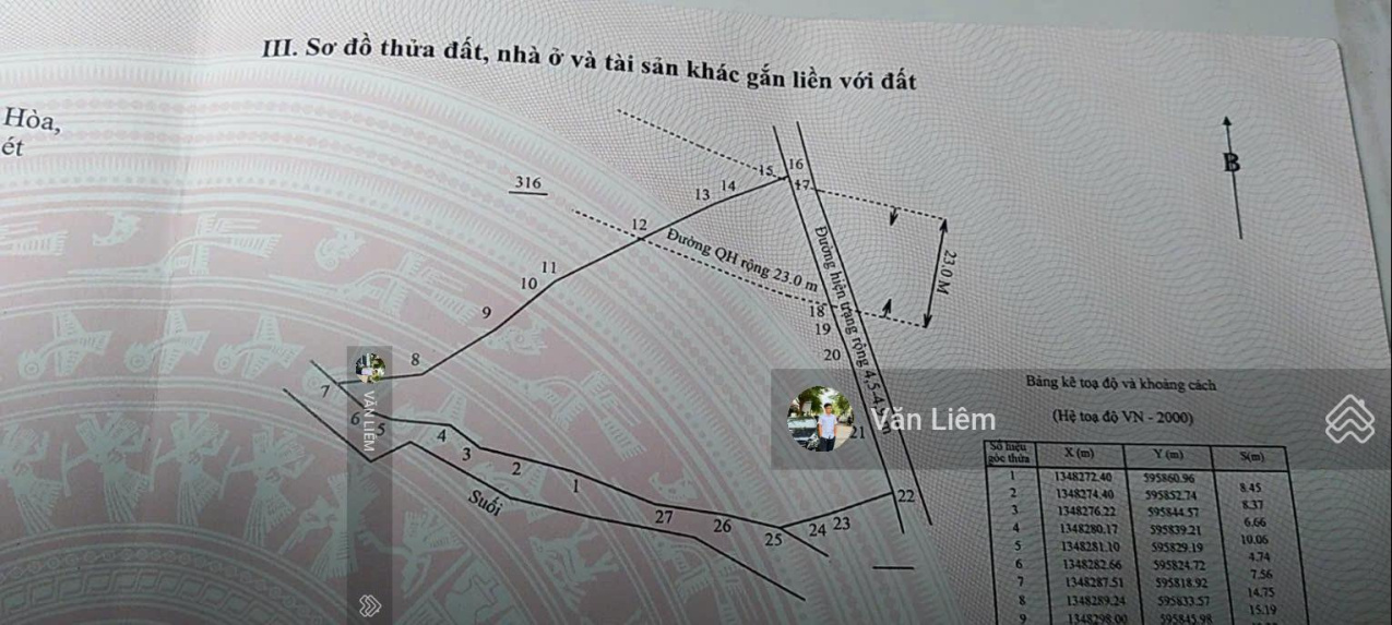 Tổng DT lô đất của mình là 3900m².Vào sổ có 3587,2m².QH đường rộng 23m mất gần 500m².Còn hơn 3100m² là tính cho khách.Mình bán 2tr/m².Đường hiện trạng là 5 m