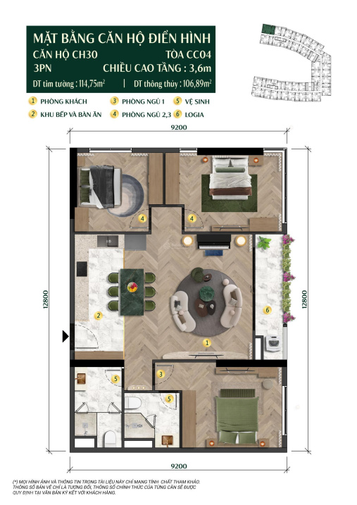Căn hộ 3PN 105m² Charmora City Sun Nha Trang, sổ lâu dài, giá TTS dự kiến 7,3 tỷ