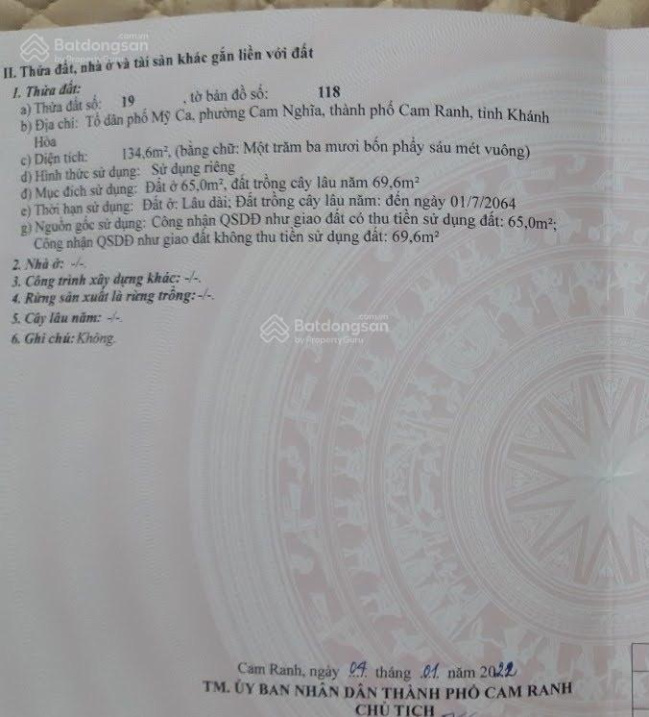 Chính chủ bán lô đất mặt tiền QL1A (Hùng Vương), TDP Mỹ Ca, P. Cam Nghĩa, TP. Cam Ranh