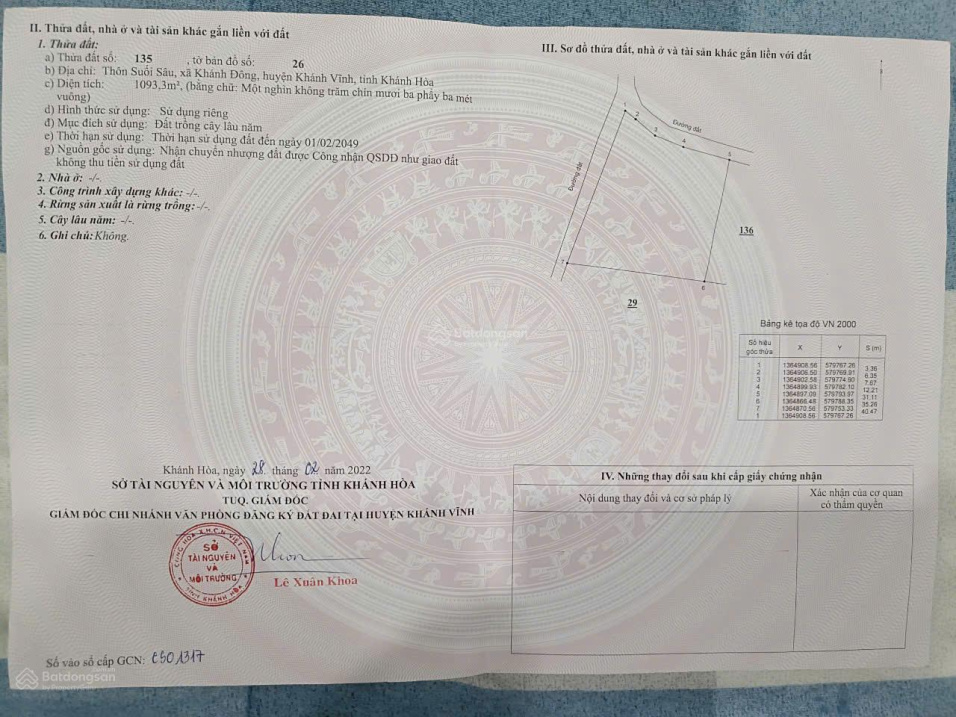 Chính chủ kẹt tiền cần cho ra đi lô đất vườn tâm huyết tại xã Khánh Đông, Khánh Vĩnh.Thông tin chi tiết: Diện tích: 1093m² số đo cực chuẩn 35m40m đất trồng cây