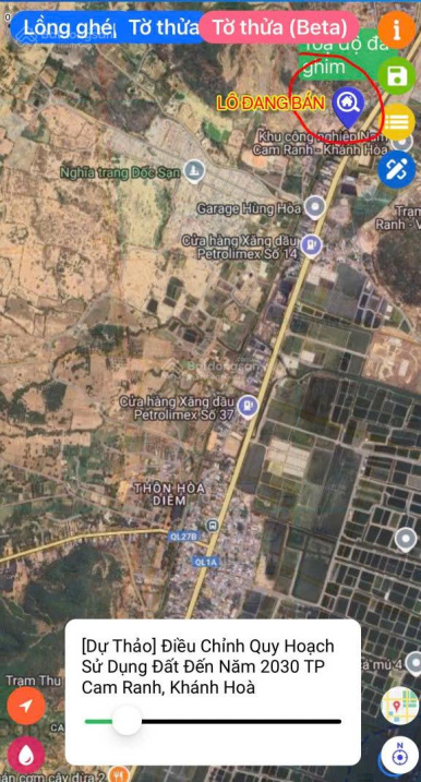 Chủ đất cần bán mảnh đất đẹp ở Cam Thịnh Khánh Hoà. Giá 15 tỷ + phí lên thổ cư: ~ 3,6 tỷ. Diện tích: 2805,5m². trong đó có ~2100m² thổ cư được phép lên