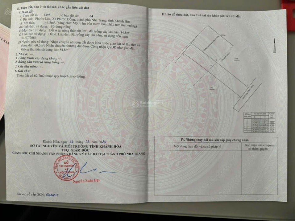 Lô đất đẹp TT Phước Đồng giá 2,2 tỷ ạ.Số tờ 64, số thửa 1393.Chủ gửi bán lô đất đẹp tại Phước Lộc, Phước Đồng tp Nha Trang. Với diện tích: 144,8m²