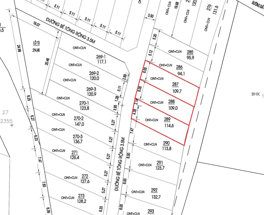 | Đường vào | 3,5 m |