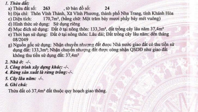 Đất nềnNha TrangXã Vĩnh Thạnh